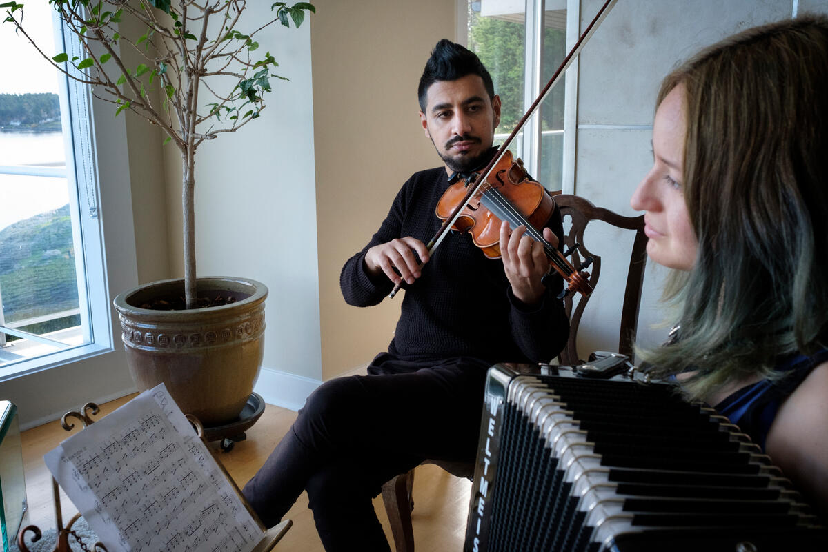 She arranged for one of Canada’s top strings teachers, Michael van der Sloot, to mentor Sari and rebuild the skills that had atrophied over the years of fleeing war. Cloistered in a small office in the conservatory, Sari dove into the music with his teacher. Notes became a thread back to his life in Syria. The melodies were different, but the actions felt comforting.