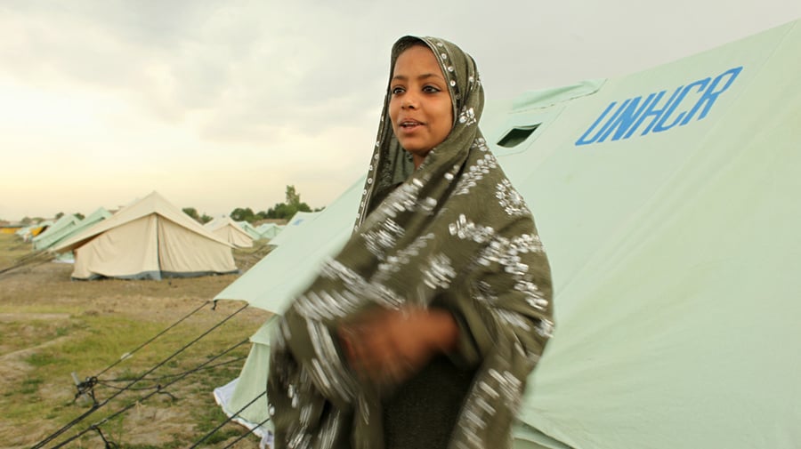 Twelve-year-old Salma arrives in Larama, in Peshawar, where UNHCR has established a new camp.