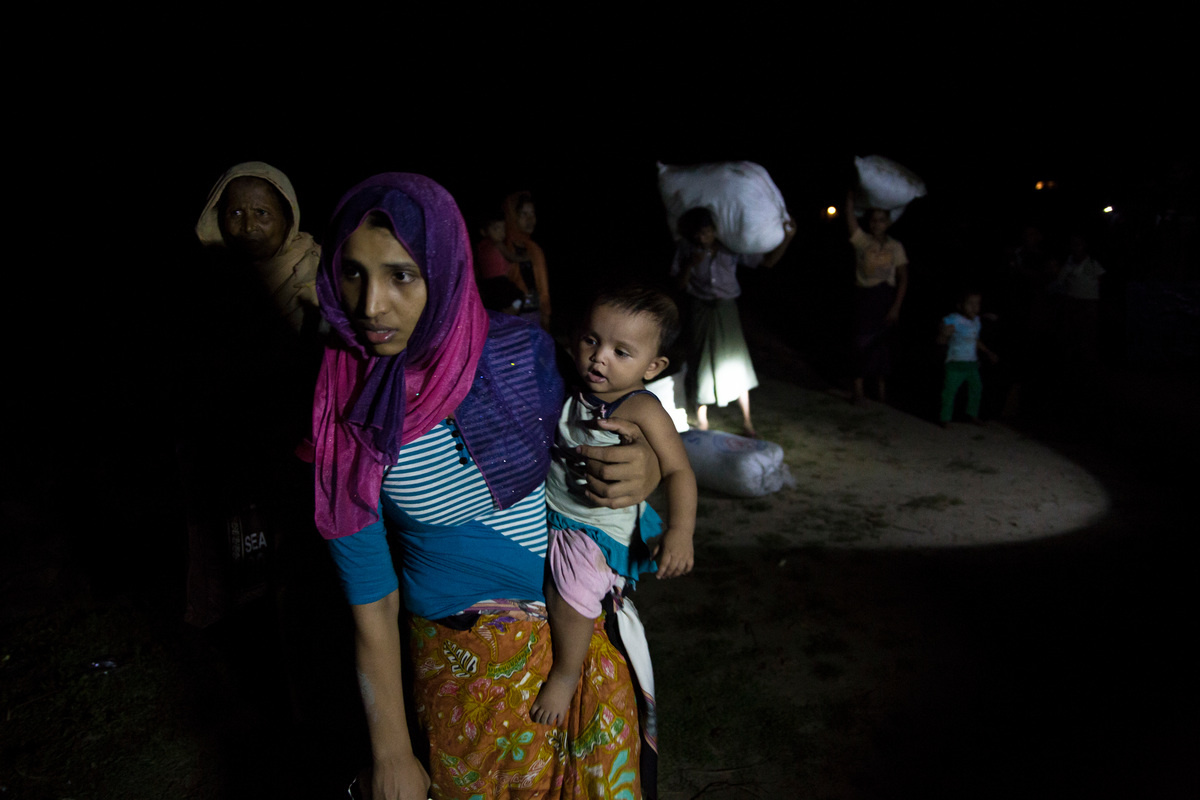Rohingya refugees fleeing Myanmar arrive by wooden boats under the cover of darkness on the beach of Shah Porir Dwip, near Cox's Bazar, Bangladesh.