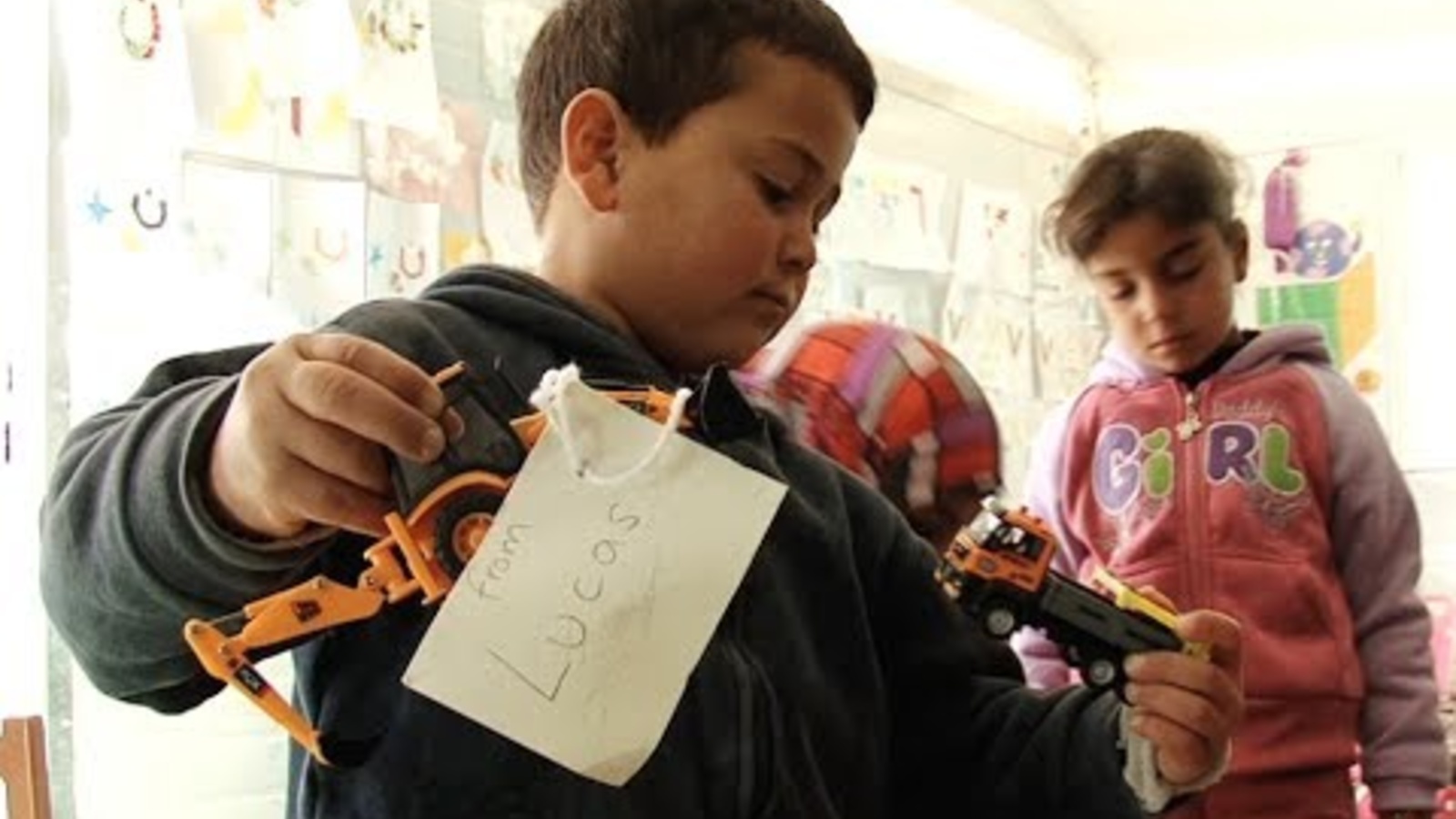 For Syrian refugee children this was a gesture of solidarity and compassion: "The kids in England sent these toys to us because they know we have nothing of our own," said Waed who is five and received a small pink dollhouse. Her friend Mohamed, also five, hugged a clockwork police car: "I want to tell the kids who sent all this stuff that we didn't have toys but now we have more than we ever could have imagined."