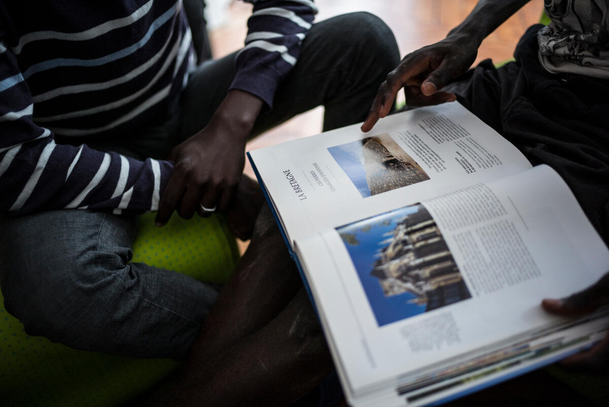 Manal*, 16, from Sudan, looks at photos of castles in the south of France after lunch. “It’s beautiful, where is it?" he asks. He wants to find the location on a map to see if it is possible to visit them.
