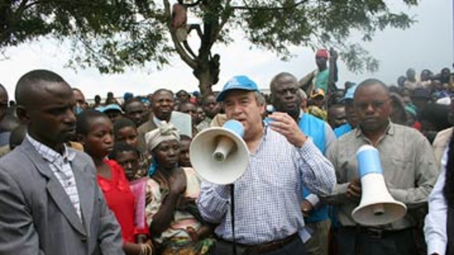 GOMA, Democratic Republic of the Congo (UNHCR) - UN High Commissioner for Refugees António Guterres has called for an end to the fighting in eastern Democratic Republic of the Congo (DRC) and pledged to help improve conditions in camps there for tens of thousands of displaced people. Guterres, wrapping up a three-day visit to DRC's strife-torn North Kivu province on Sunday, said the real solution to the massive displacement lay in lasting peace.