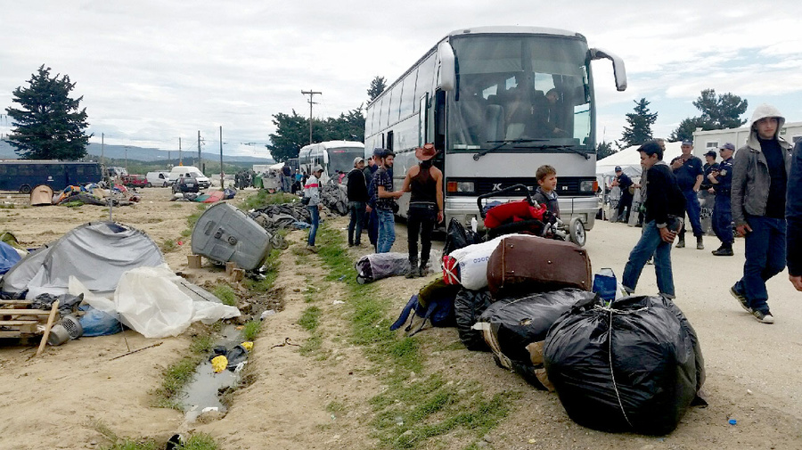 Refugees being transferred from Idomeni, Greece.