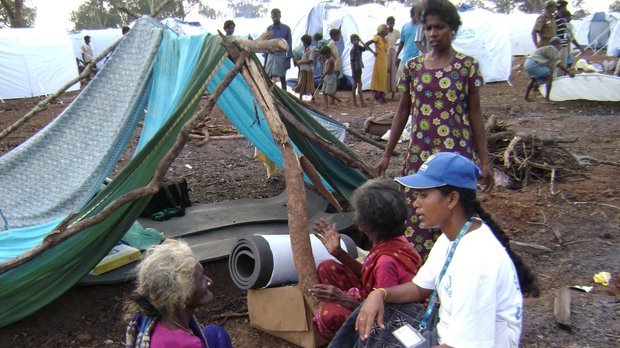 At work in the world's danger zones: A UNHCR staffer interviews women who had just fled fighting earlier this year in the dying days of Sri Lanka's civil war.