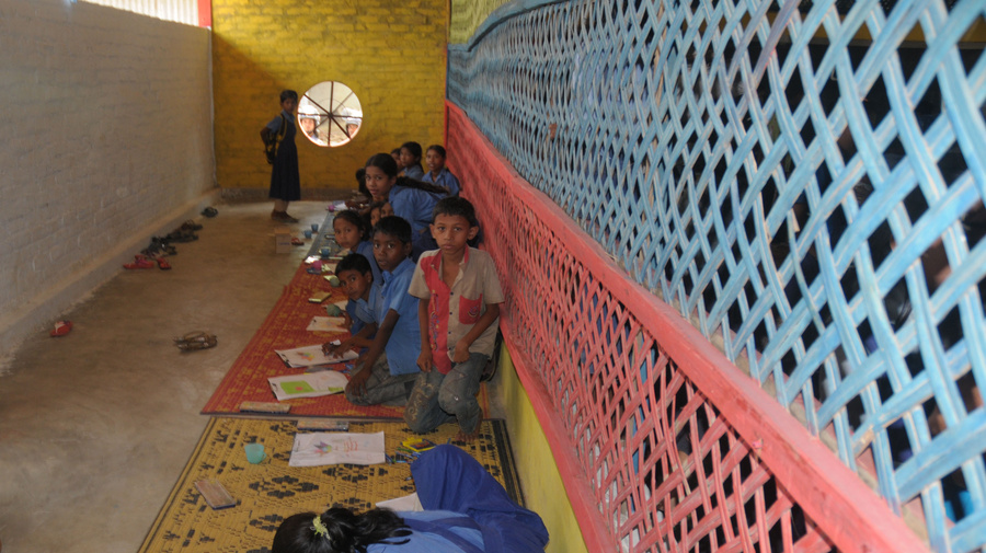 A child-friendly space in a school in Kutupalong village. The space is funded by UNICEF as part of a UN program, closely supported by UNHCR, to help reduce poverty in Bangladeshi communities that have hosted refugees from Myanmar.