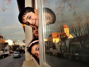 Senor Padilla with his wife and children at a UNHCR sponsored shelter home in San Lorenzo in north-western Ecuador.