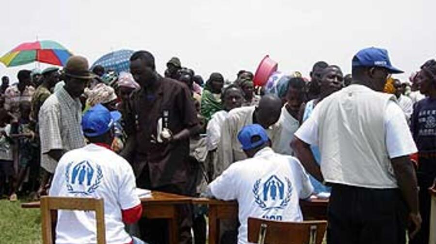 Congolese refugees being registered at Gatumba, western Burundi, in October 2002.
