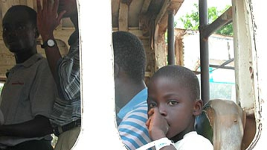 A young Liberian refugee leaving Tabou on a UNHCR return convoy.
