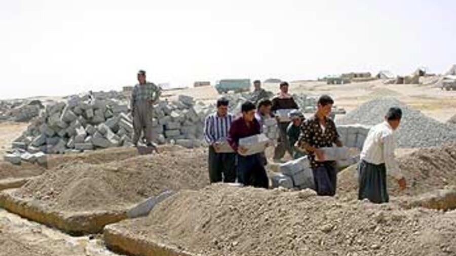 The first projects to be undertaken in Arab communities are unfolding in villages in the Haweeja area west of Kirkuk, where some 2,500 newly displaced Arabs in 500 families have gathered since the collapse of Saddam Hussein's government.