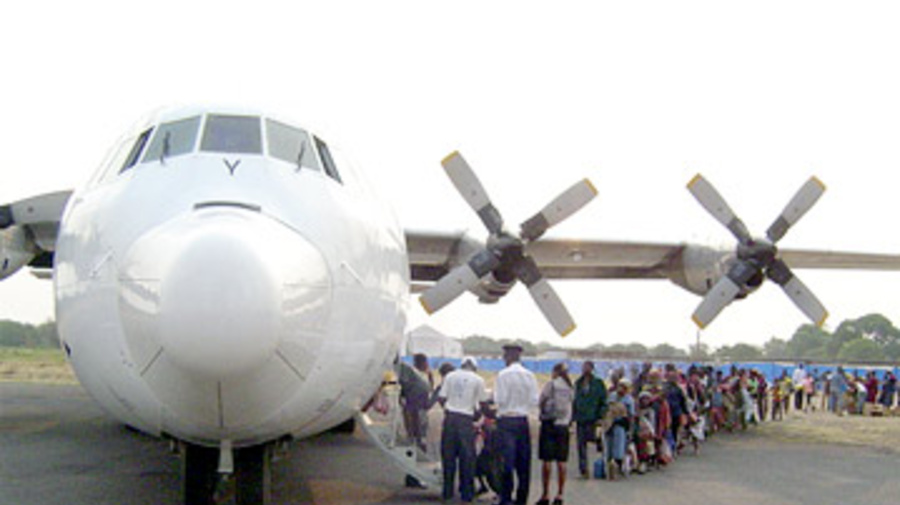 Angolan refugees boarding the flight home from Mongu airport in western Zambia.