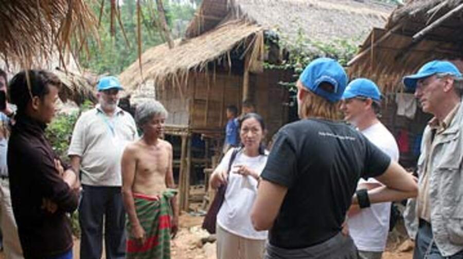 UNHCR values its corporate partners highly. Here in Thailand, members of UNHCR's Council of Business Leaders listen as Karen refugees explain the problems of living in a closed refugee camp.