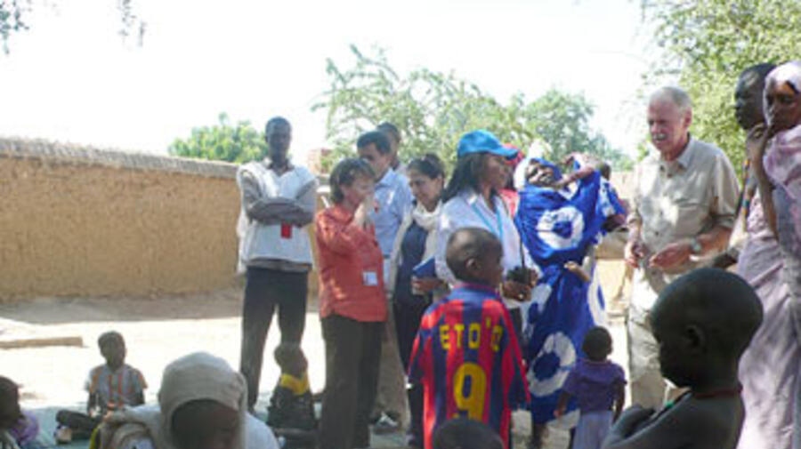 Deputy High Commissioner for refugees L. Craig Johnstone (standing right) meets families and children in Abéché.