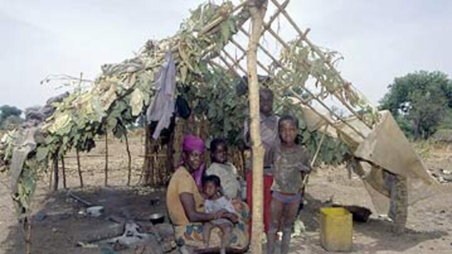 Central African refugees who fled to Chad's remote southern border in 2003 also built flimsy shelters out of leaves and sticks.