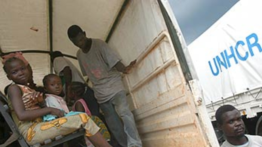 UNHCR provided 15 trucks for transport, and distributed relief items like mats, blankets and kitchen sets to the newly-relocated Liberians. The agency had earlier handed out 10,000 sticks to build additional transit centres in the IDP camps. The new arrivals will live in these temporary shelters for up to a week before they are given construction materials to build their own huts in the camps.