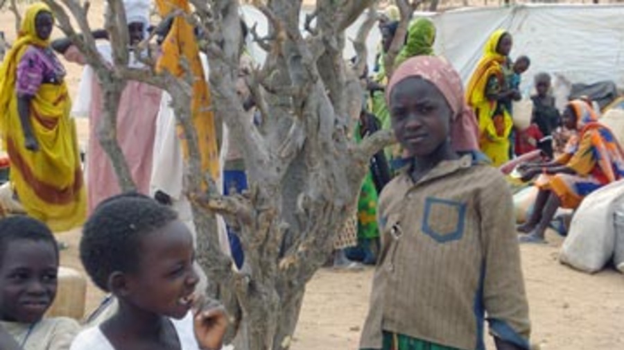 Sudanese refugee children and relatives at Mile Camp shortly after their arrival from the Birak area near the Chad-Sudan border.