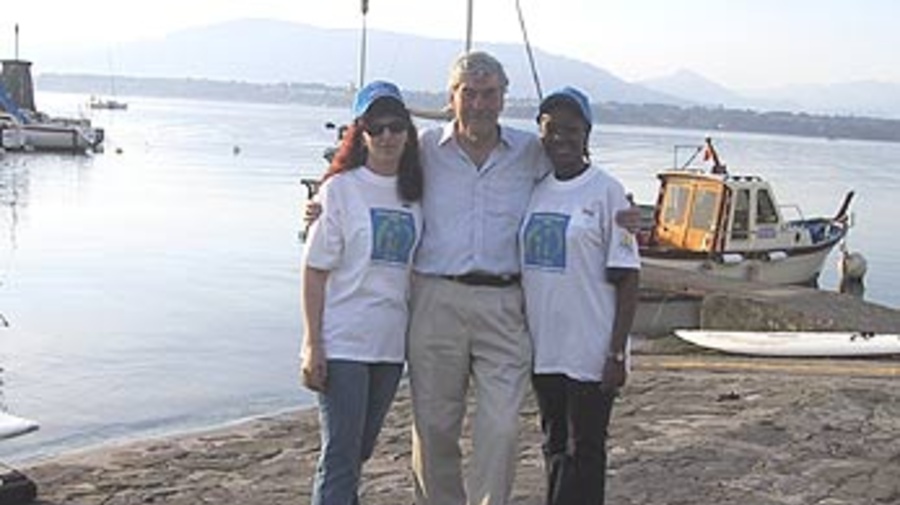 High Commissioner Ruud Lubbers sees off two women refugees at the Bol d'Or sailing race on Lac Léman, part of the World Refugee Day celebrations on 20 June.