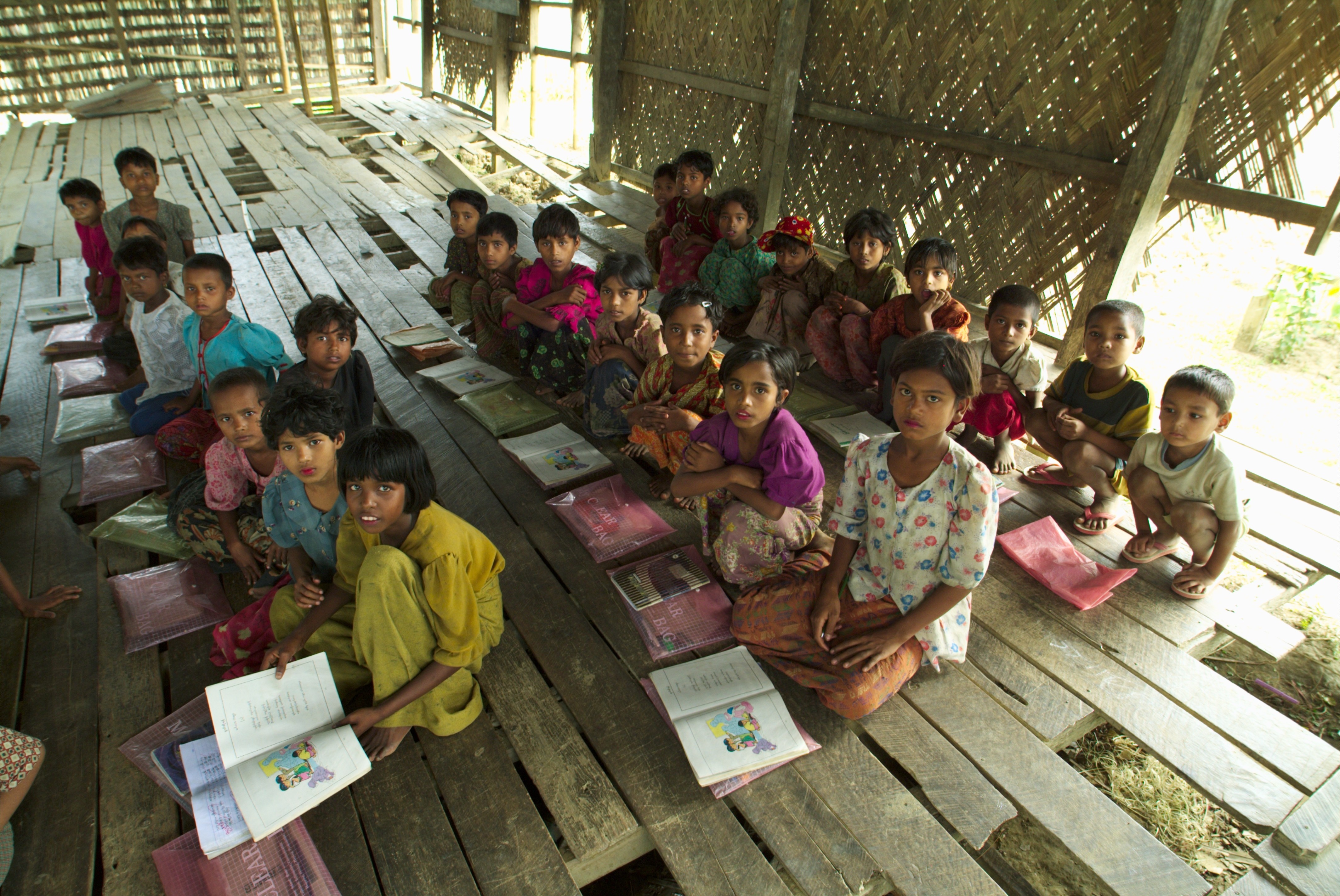 To successfully reintegrate returnees, UNHCR and Community and Family Services International offer basic Myanmar language training in Buthidang Township.