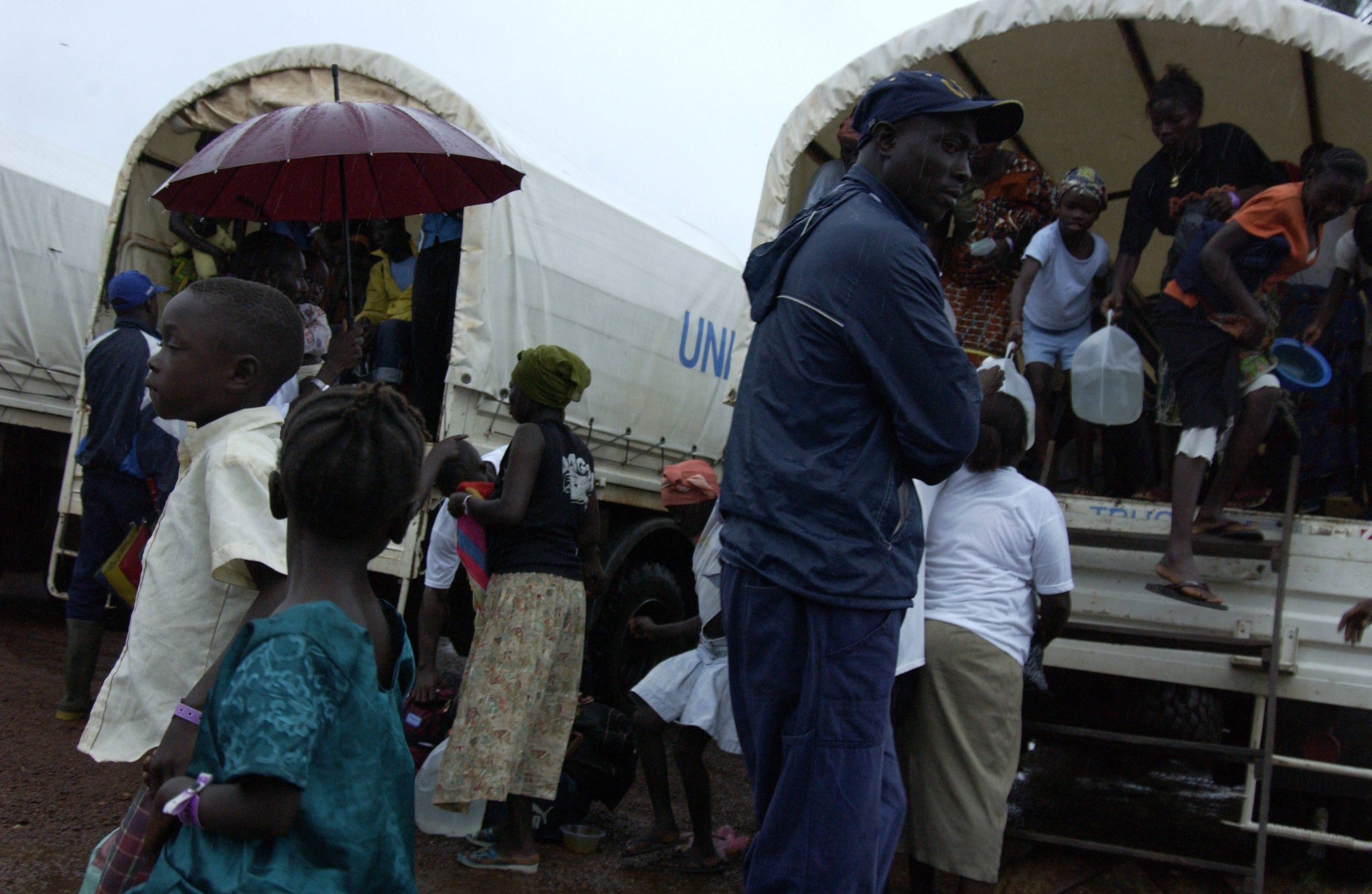 Refugees with their worldly possessions, which they will need to restart life back in Sierra Leone.