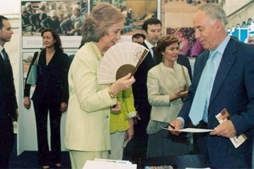 Spain's Queen Sofía visiting the UNHCR stand at the Madrid Book Fair. © UNHCR/H.Peraza
