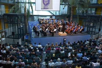 More than 500 people were treated to performances by two philharmonic orchestras and renowned Swiss mezzo-soprano Brigitte Balleys, as well as a live webcam/Internet link with Swiss aid workers in Largo camp.