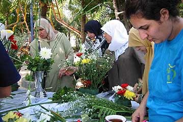Refugee women taking part in a flower arrangement competition. © UNHCR Jakarta