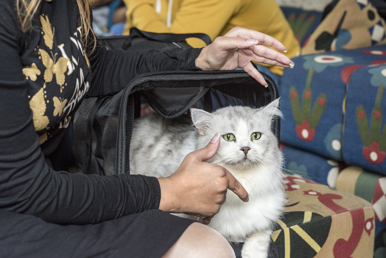 Für die 34-jährige Darin aus Syrien stand außer Frage, dass ihr Kater Caesar sie auf der Flucht begleitet. Die junge Frau, die seit Mai 2019 mit ihren Eltern in der Schweiz lebt, leidet an chronischer Polyarthritis, eine schmerzhafte Gelenkentzündung. Caesar ist für sie Teil der Familie. „Er ist sehr intelligent und er hört gut zu“, schwärmt Darin im Gespräch und krault Caesar. Der Kater mit den grünen Augen und dem weiss-grauen Fell kam vor sieben Jahren zur Familie. Wegen der Bombardierungen musste sich die Familie tagelang in einem Keller verstecken. „Es war sehr langweilig“, sagt Darin. Ihr Bruder schenkte ihr dann Caesar, als dieser erst zwei Monate alt war. Caesar habe sich vor den Bombardierungen gefürchtet und immer in der Nähe der Menschen bleiben wollen. Er sei auch von seinem Charakter her sehr sozial, sagt Darin. „Er ist wie mein Kind. Immer, wenn ich am Telefon mit der Familie spreche, sagen sie mir: ,Gib mir zuerst Caesar, dann sprechen wir mit dir.’“ Ohne es zu wissen, hat der Kater eine emotional unterstützende Wirkung für Darin.