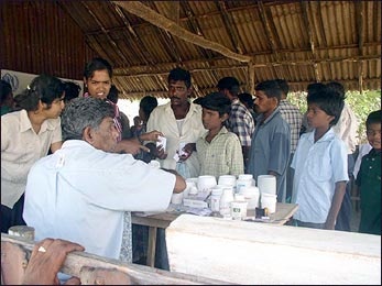 Distributing medicine through a mobile health clinic sponsored by UNHCR in Mannar, north-western Sri Lanka.