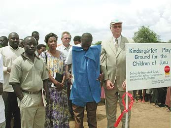 German Ambassador Klaus Holderbaum (right) inaugurating a playground at Navikale's Jura A kindergarten.