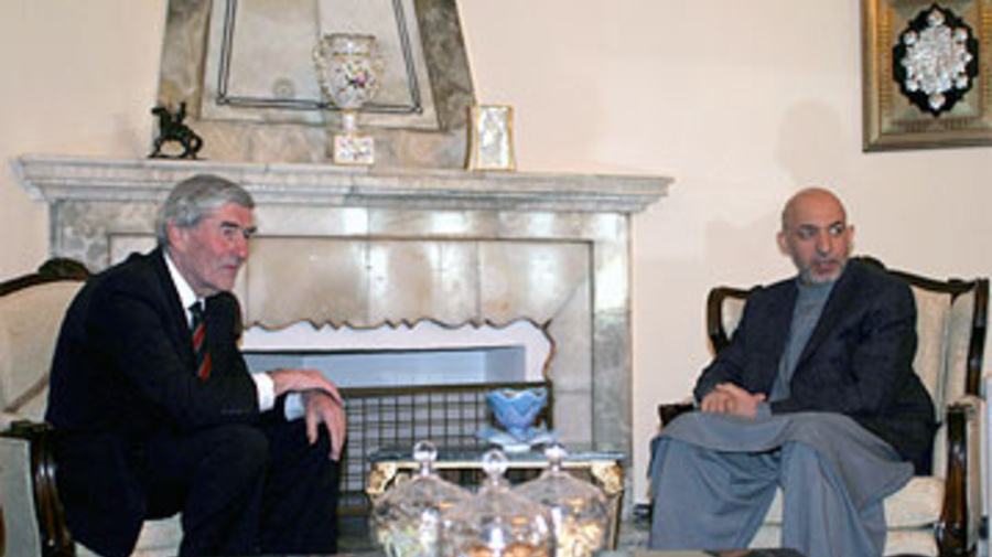 High Commissioner for Refugees Ruud Lubbers and Afghan President Hamid Karzai discuss return and reintegration of Afghan refugees.