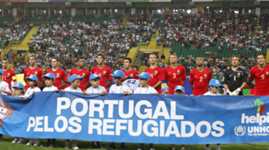 When Portugal and Denmark entered the José Alvalade Stadium last Wednesday, each player was accompanied by a child sporting a T-shirt and cap emblazoned with the distinctive UNHCR logo. As they lined up for the national anthems, the youngsters held up banners in front of the two teams bearing the messages in English and Portuguese: "Portugal Pelos Refugiados" (Portugal for the Refugees).