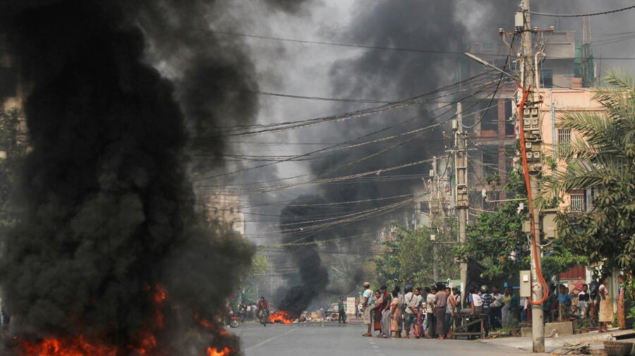 Tires burn on a street as protests against the military coup continue, in Mandalay, Myanmar March 27, 2021.