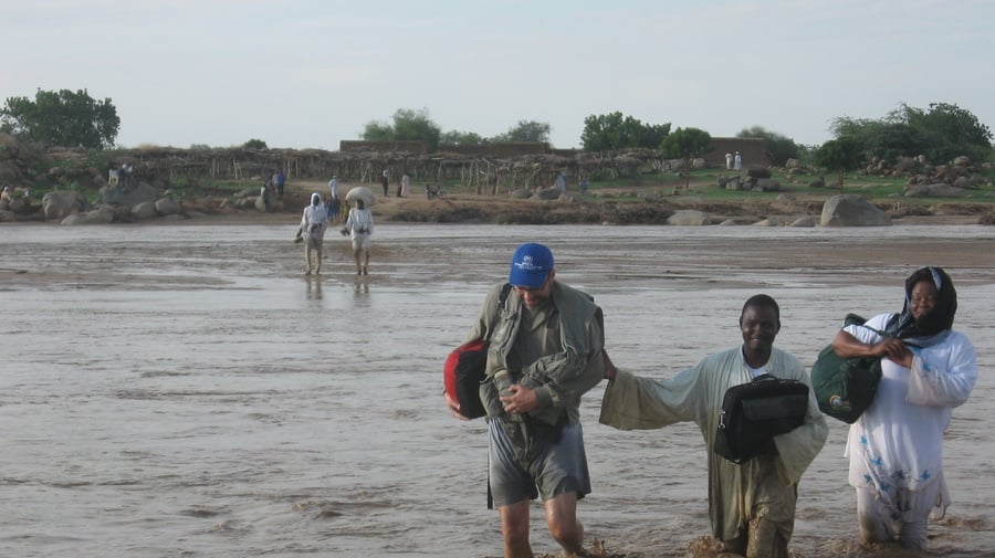 Normally based in Washington, DC, HIAS' Mark Hetfield fords a river in eastern Chad while visiting one of the organization's programmes to assist refugees.