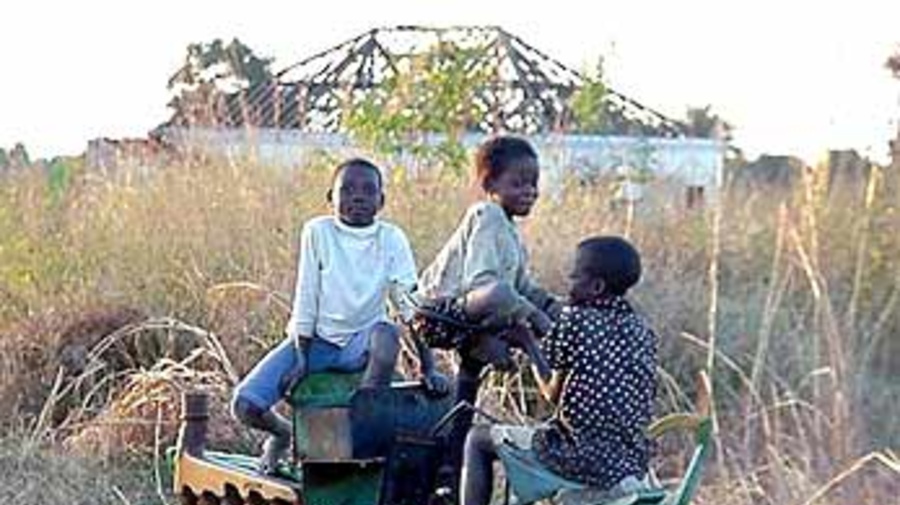 Young returnees playing in the ruins of Cazombo in Moxico province.