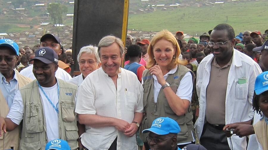 The High Commissioner for Refugees, António Guterres and the WFP Executive Director Josette Sheeran visit Nyanzale in North Kivu.