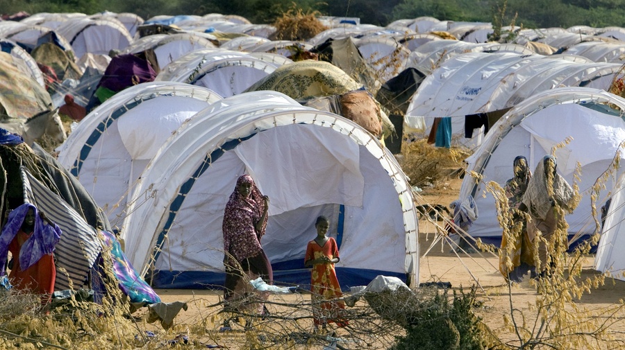 Somali refugees stand by their tents at Dadaab in north-west Kenya.