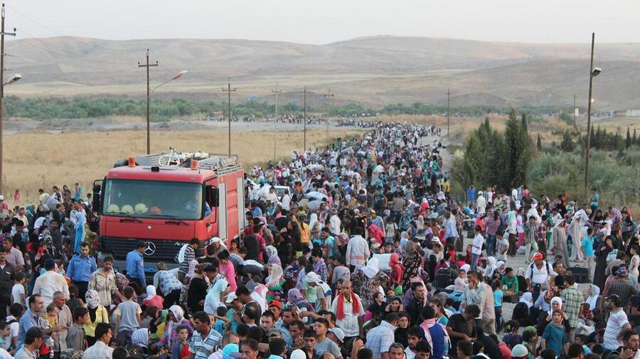 Thousands of people flowed from Syria across the Peshkhabour border crossing into Iraq's Dohuk Governorate