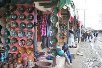 The colourful pottery market in Istalif, north of Kabul, draws a few tourists.