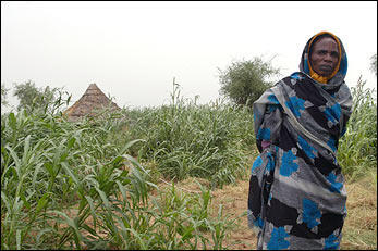 Miriam is luckier this year. In 2004, she made the same journey and also planted okra, but her crops were completely destroyed twice and there was hardly anything left to bring back to her family in the camp.