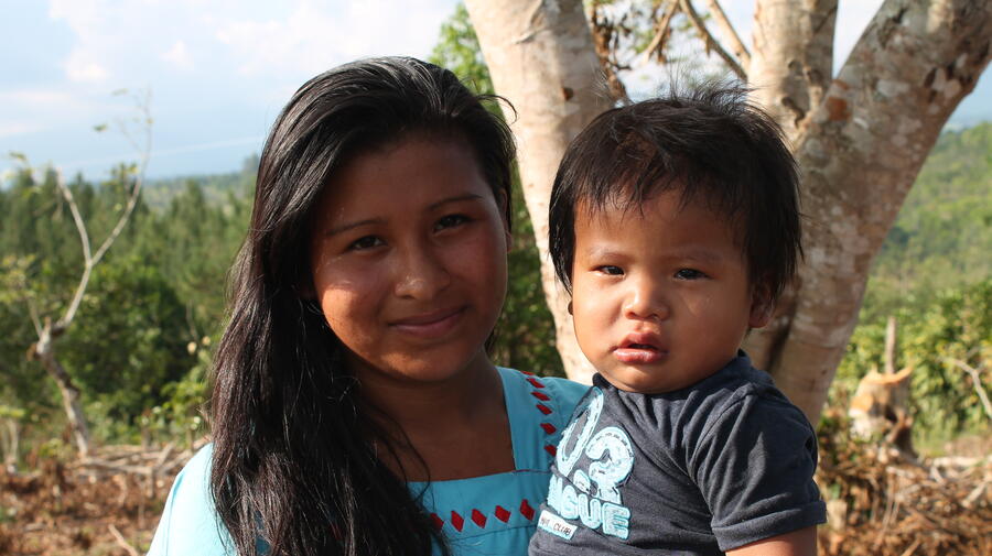 Elida with her son Pablo, who was born on a remote coffee plantation in Costa Rica. UNHCR has been helping indigenous people in Costa Rica like her to register the birth of their children.