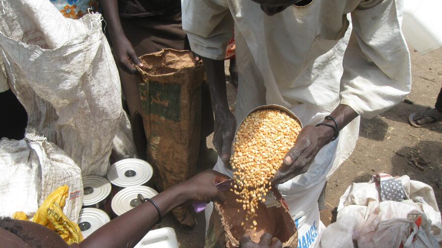 A precious food distribution in South Sudan. UNHCR and the World Food Programme fear that too many people may be cut off from assistance if conflict continues in South Sudan.