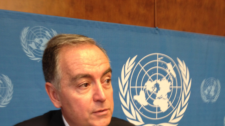 Panos Moumtzis, UNHCR's newly appointed Regional Refugee Coordinator for Syrian Refugees, briefs journalists at the Geneva Palais, March 13, 2012