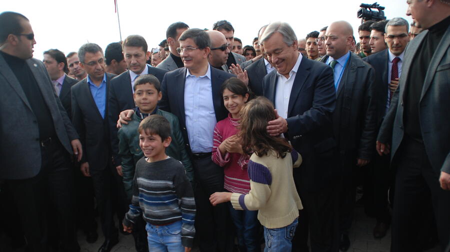 Turkey's Foreign Minister Ahmet Davutoğlu and High Commissioner António Guterres meet Syrian refugee children.