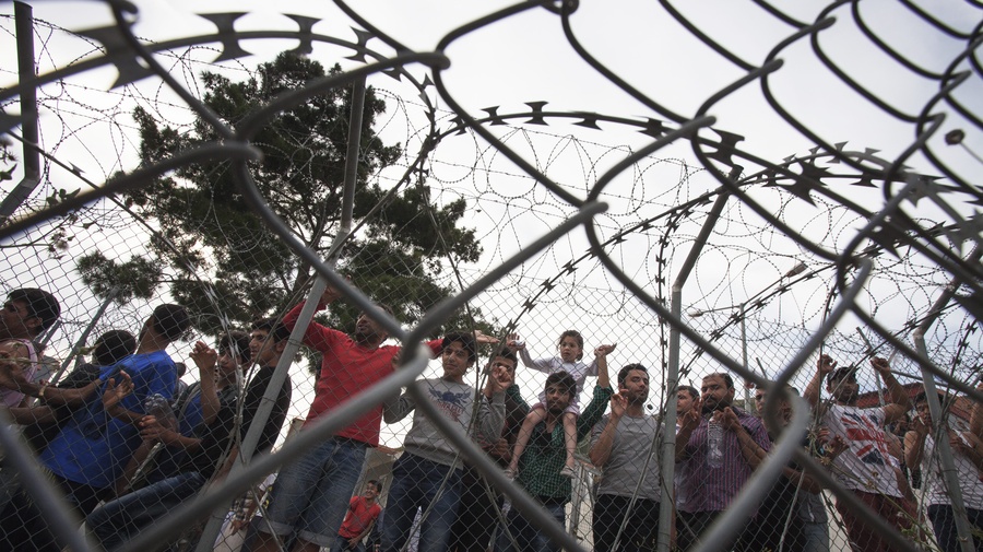 Asylum-seekers in a holding centre on Greece's Samos Island. People wishing to apply for asylum can be detained without an individual assessment or without alternatives to detention being considered.