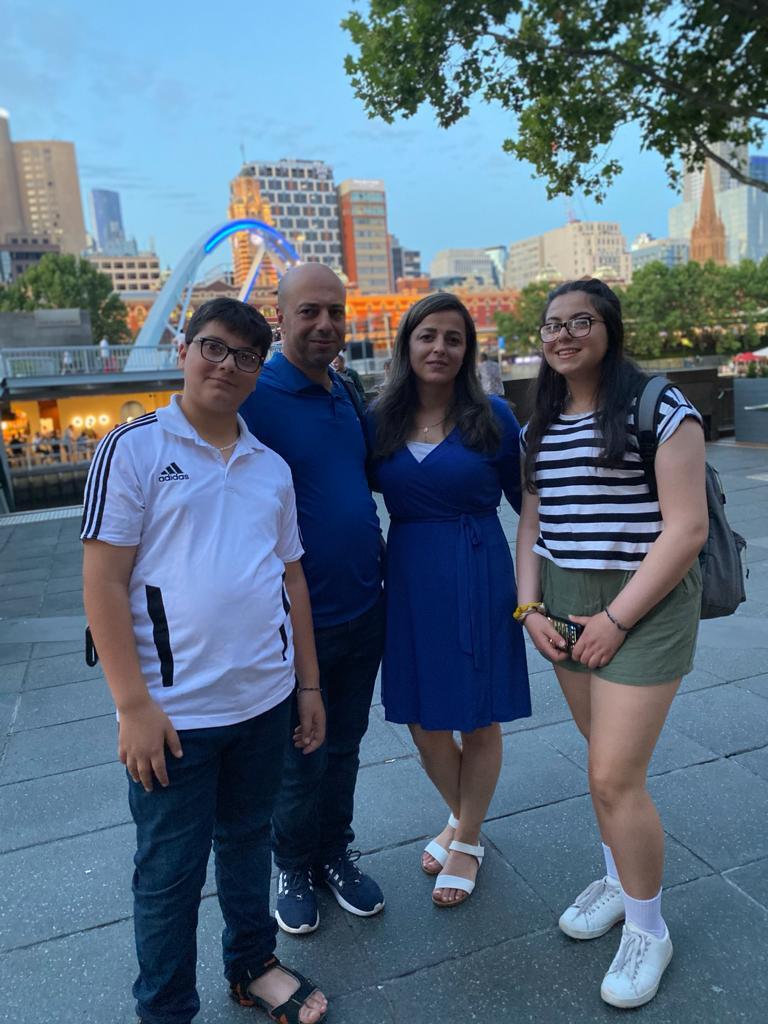 Amany Aloklah with her husband and two children exploring Melbourne, their new home in Australia.