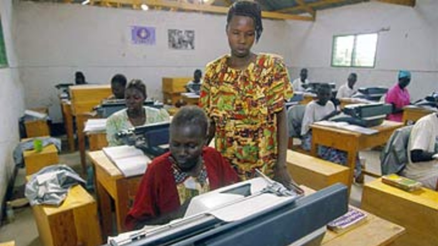 Sudanese refugees attending typing classes at the Kakuma refugee camp in Kenya.