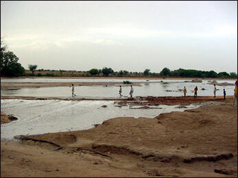 A flash flood between Farchana to Abéché, but the water often washes away before it can be collected.