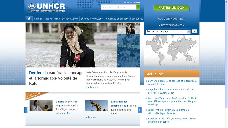 Development of the French site has been welcomed by UNHCR staff working in francophone countries, including France itself. There are more than 40 francophone countries around the world and French is one of the official languages of the United Nations.