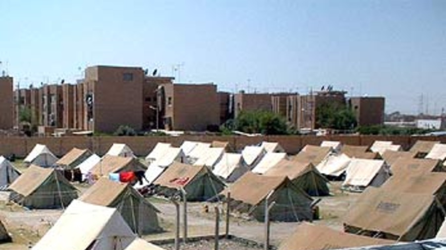 Palestinian refugees forced from their homes in Baghdad are now living in a tented camp.