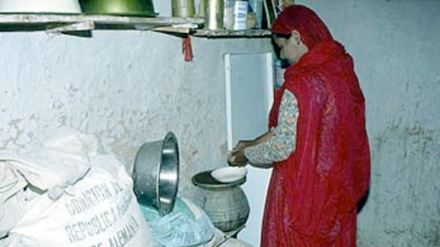 A Western Saharan refugee rationing her meagre food supplies in Algeria's Dakhla camp.