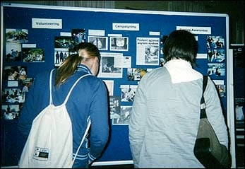 At the conference, teenage Britons, refugees and asylum seekers got to question British Members of Parliament Evan Harris and Lynne Jones on asylum issues and to participate in workshops on a range of topics from the rights of gay and lesbian refugees to the use of art to raise awareness. There were also exhibitions, including a lorry display entitled "Escape to Safety" that portrayed the journeys of three asylum seekers.